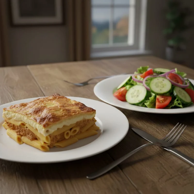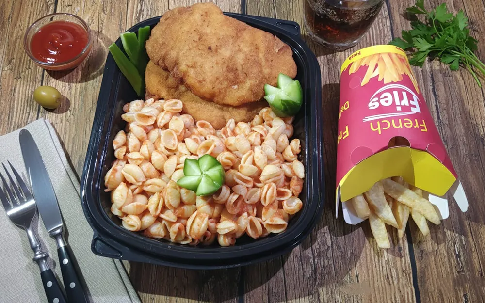 وجبة مكرونة بالصلصة مع 2 قطعة بانيه